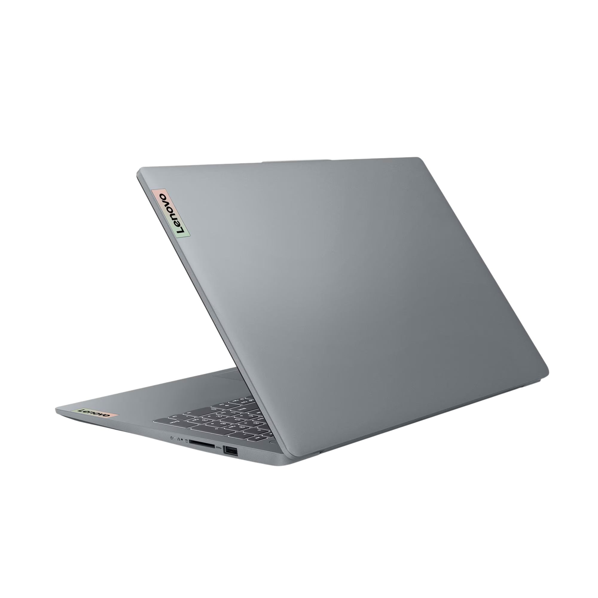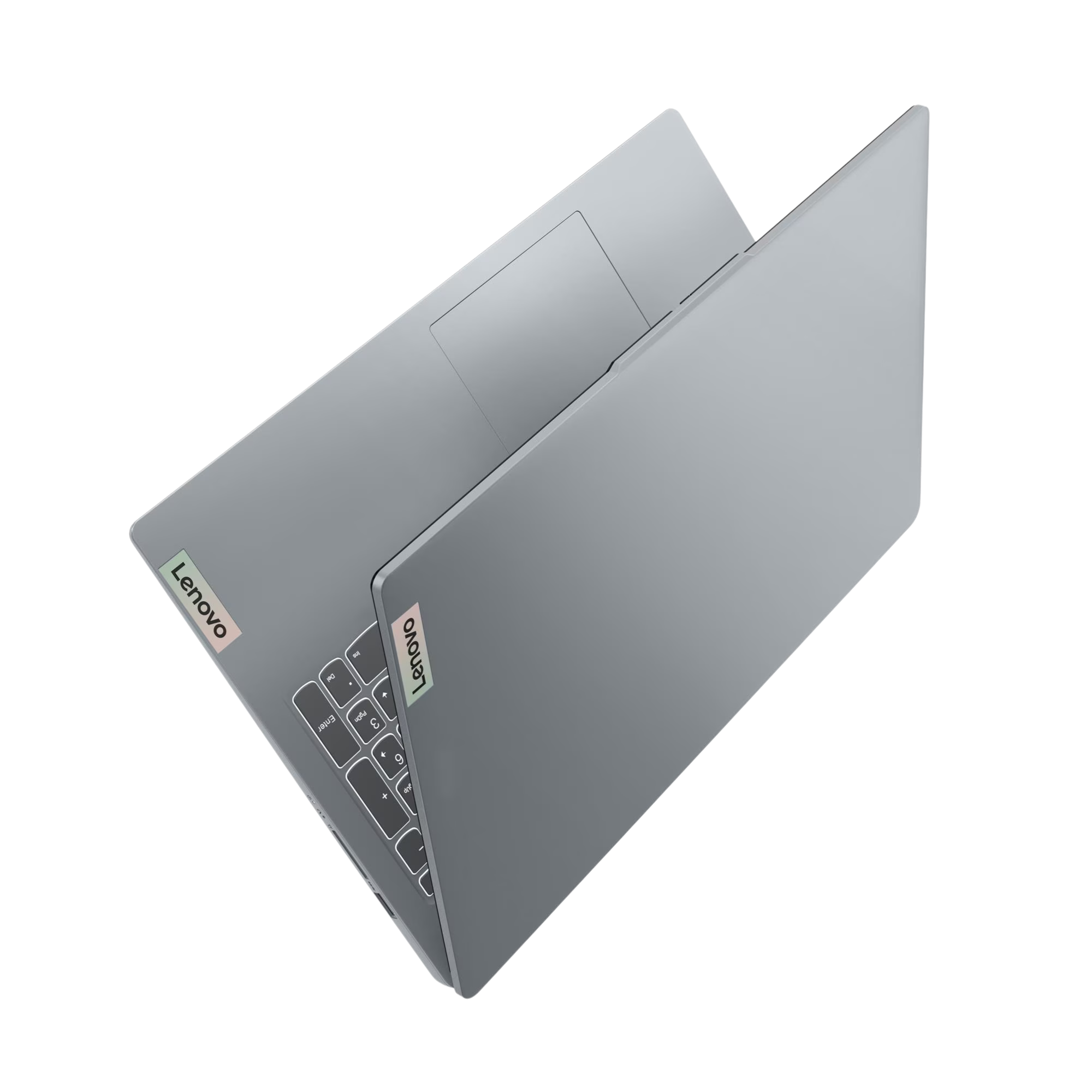 لپ تاپ IdeaPad Slim 3 15AMN8-R3 از زبان طراحی مینیمال و مدرنی پیروی میکند که مشخصهی اصلی محصولات اخیر لنوو است. در این دستگاه خبری از خطوط تهاجمی یا نورپردازیهای پر زرق و برق نیست؛ در عوض، همه چیز در خدمت یک ظاهر حرفهای و پاکیزه قرار دارد. بدنهی دستگاه که معمولاً در رنگهایی مانند خاکستری قطبی (Arctic Grey) عرضه میشود، سطحی مات دارد که علاوه بر ایجاد حسی خوشایند در هنگام لمس، مقاومت خوبی در برابر جذب اثر انگشت و لکه از خود نشان میدهد. لوگوی لنوو به صورت یک پلاک فلزی کوچک و برجسته در گوشهی درب و همچنین در گوشهی استراحتگاه دست حک شده که هویتی شیک و به دور از اغراق به دستگاه میبخشد. خطوط بدنه صاف و گوشهها کمی گرد طراحی شدهاند تا ضمن حفظ ظاهر مدرن، حمل و جابجایی آن نیز آسانتر شود. این زبان طراحی خنثی و در عین حال زیبا، باعث میشود لپ تاپ هم در محیطهای آکادمیک و هم در جلسات کاری رسمی، کاملاً مناسب و حرفهای به نظر برسد.