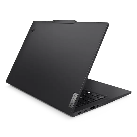 لپ تاپ ThinkPad T14 Gen 5 به میراث گران‌بهای سری ThinkPad وفادار مانده و زبان طراحی مینیمالیستی، حرفه‌ای و جاودانه‌ی خود را به نمایش می‌گذارد. رنگ مشکی عمیق (Deep Black) مات بدنه، که اثر انگشت را به سختی جذب می‌کند، اولین چیزی است که توجه را به خود جلب می‌کند و حسی از جدیت و اعتبار را القا می‌کند. خطوط بدنه صاف، دقیق و بدون هیچ‌گونه زوائد و تزئینات غیرضروری هستند، که این خود نمادی از تمرکز بر کارایی است. لنوو در این نسل نیز از لهجه‌های قرمز رنگ نمادین خود در لوگوی ThinkPad روی درب و گوشه‌ی استراحتگاه دست، و البته، در گنبد قرمز رنگ ترک‌پوینت (TrackPoint) در مرکز کیبورد، استفاده کرده است. این تضاد رنگی ظریف، هویتی منحصربه‌فرد به دستگاه می‌بخشد. یکی از تغییرات طراحی قابل توجه در نسل پنجم، برجستگی معکوس در بالای درب نمایشگر است که به آن “Communication Bar” گفته می‌شود. این نوار نه تنها جایگاه دوربین با کیفیت بالا و میکروفون‌هاست، بلکه به عنوان یک دستگیره‌ی کوچک عمل کرده و باز کردن درب لپ‌تاپ را با یک دست تسهیل می‌بخشد. در مقایسه با نسل قبلی، حاشیه‌های اطراف نمایشگر باریک‌تر شده و دستگاه ظاهری مدرن‌تر و جمع‌وجورتر به خود گرفته است. در مجموع، زبان طراحی T14s Gen 5، تعادلی کامل بین سنت و مدرنیته است؛ یک ابزار کار حرفه‌ای که در هر جلسه و محیط کاری، شیک و باوقار به نظر می‌رسد.